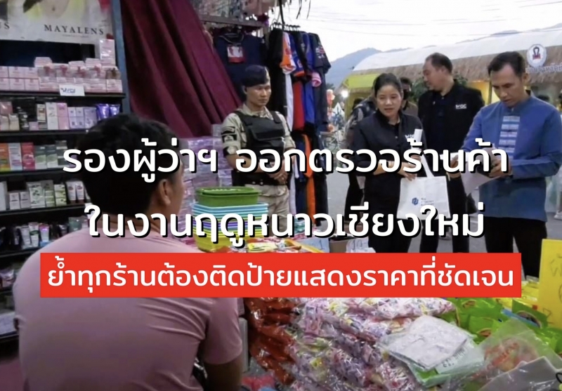 รองผู้ว่าราชการจังหวัดเชียงใหม่ นำหน่วยงานที่เกี่ยวข้อง ลงพื้นที่ตรวจสอบร้านค้าในงานฤดูหนาวฯ เชียงใหม่ สร้างความมั่นใจแก่ผู้บริโภค เน้นย้ำทุกร้านต้องติดป้ายแสดงราคาที่ชัดเจน
