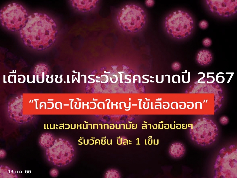 เตือนเฝ้าระวัง!!! โรคระบาดปี 2567 “โควิด-ไข้หวัดใหญ่-ไข้เลือดออก” แนะสวมหน้ากากอนามัย ล้างมือบ่อยๆ รับวัคซีน ปีละ 1 เข็ม