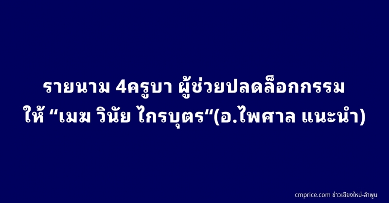 | • รายนาม 4ครูบา ผู้ช่วยปลดล็อกกรรมครั้งสุดท้าย ให้ เมฆ วินัย ไกรบุตร ตามที่ อ.ไพศาล แนะนำ |