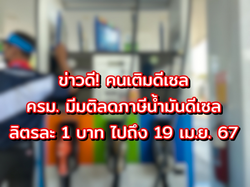 ดร. เอกนิติ นิติทัณฑ์ประภาศ อธิบดีกรมสรรพสามิต เปิดเผยหลังการประชุมคณะรัฐมนตรี เมื่อวันที่ 16 มกราคม 2567 มีมติเห็นชอบขยายระยะเวลาปรับลดอัตราภาษีสรรพสามิตน้ำมันดีเซลลงลิตรละ 1 บาท ออกไปอีก 3 เดือน ตั้งแต่วันที่ 20 มกราคม 2567 ถึง วันที่ 19 เมษายน 2567 เพื่อไม่ให้ราคาขายปลีกน้ำมันดีเซลเพิ่มสูงขึ้นจนเป็นอุปสรรคต่อการฟื้นฟูเศรษฐกิจของประเทศ และความเป็นอยู่ของประชาชนจากภาระค่าครองชีพที่สูงขึ้น