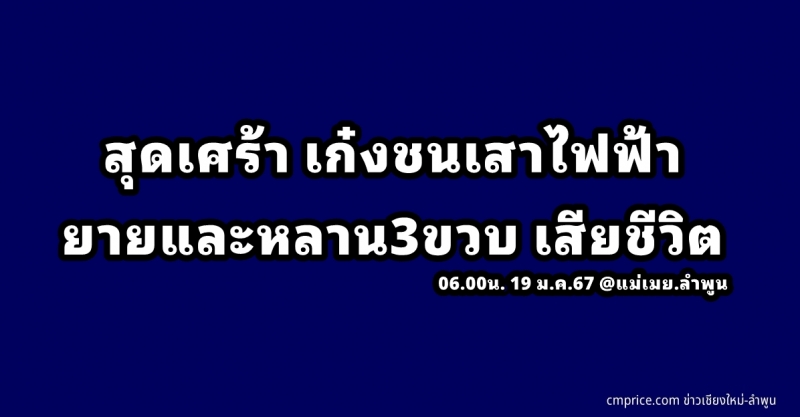 | • สุดเศร้า เก๋งชนเสาไฟฟ้า ยายและหลาน3ขวบ เสียชีวิต @แม่เมย.ลำพูน |