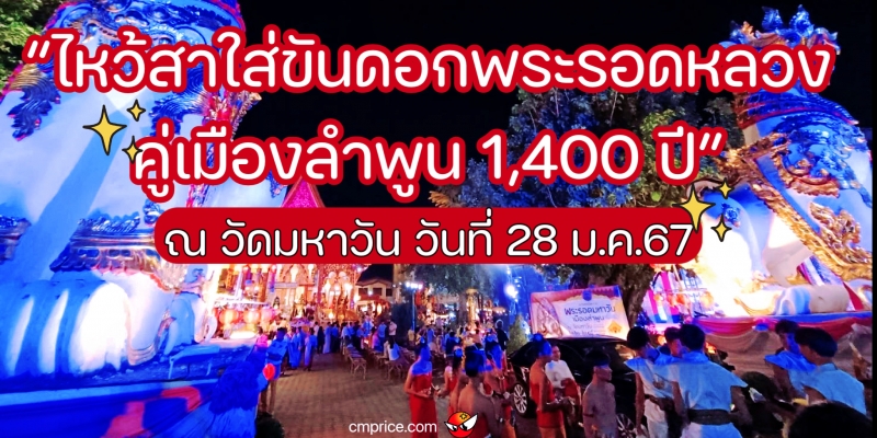 วัดมหาวันจัด งานไหว้สาใส่ขันดอกพระรอดหลวงคู่เมืองลำพูน 1,400 ปี วันที่ 22-28 ม.ค.67