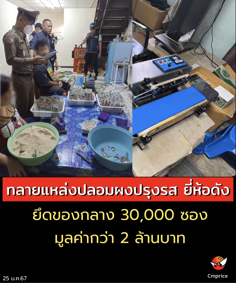 ตำรวจสอบสวนกลาง ทลายแหล่งปลอม ผงปรุงรส ยี่ห้อดัง ยึดของกลาง 30,000 ซองมูลค่ากว่า 2 ล้านบาท