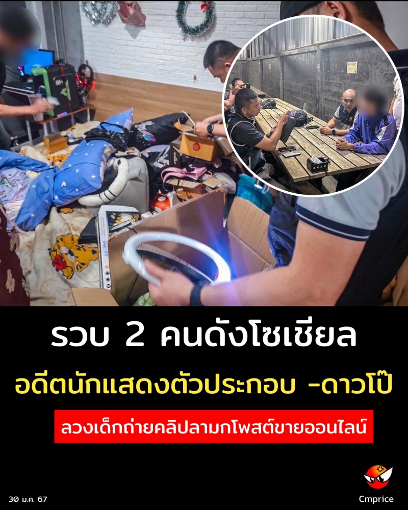 พฤติการณ์ เจ้าหน้าที่ตำรวจ กก.1 บก.ปคม. ได้ทำการสืบสวนพบบัญชีบนสื่อออนไลน์ที่มีผู้ติดตามกว่า 1.3 แสนราย มีพฤติการณ์โพสต์คลิปลามกอนาจารจำนวนมาก พร้อมทั้งเชิญชวนให้บุคคลทั่วไปที่สนใจเข้ามาเป็นสมาชิกในกลุ่มลับ เพื่อจะได้ดูคลิปวิดีโอลามกอนาจารมากขึ้น โดยมีคลิปหนึ่งที่โพสต์เมื่อช่วงเดือนกันยายน 2566 ปรากฏคลิปการมีเพศสัมพันธ์ของชายหญิง 2 คู่ อยู่บนเตียงเดียวกัน ซึ่งเจ้าหน้าที่ตำรวจคาดว่าคู่หนึ่งที่ปรากฎในคลิปนั้น เป็นเด็กชายและหญิง อายุต่ำกว่า 18 ปี จึงได้ทำการแฝงตัวเข้าไปอยู่ในกลุ่มลับ ทำให้ทราบว่าการจะเข้าเป็นสมาชิกนั้น ต้องเสียเงินค่าสมาชิก โดยมีให้เลือก 3 ราคา คือ VIP 199 , VVIP 999 และ SPVIP 2599 บาท เมื่อจ่ายเงินค่าสมาชิก จะได้รับเชิญให้เข้ากลุ่มลับตามราคาข้างต้น โดยพบว่ามีคลิปลามกอนาจาร โพสต์เอาไว้ในเป็นจำนวนมาก และหนึ่งในนั้น เป็นคลิปเดียวกับที่เจ้าหน้าที่ตำรวจได้ตรวจพบและคาดว่าเป็นเด็กอายุต่ำกว่า 18 ปี ก่อนทำการตรวจสอบโดยละเอียด จนทราบชื่อของเด็กที่ปรากฏในคลิปทั้ง 2 ราย และพบว่ามีอายุต่ำกว่า 18 ปีจริง