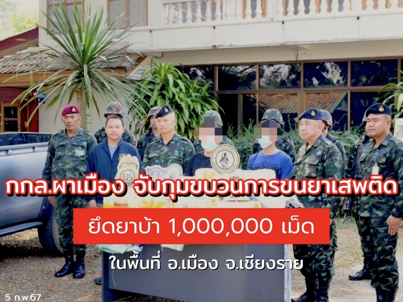 กกล.ผาเมือง จับกุมขบวนการขนยาเสพติด ยึดยาบ้า 1,000,000 เม็ด ในพื้นที่ อ.เมือง จ.เชียงราย