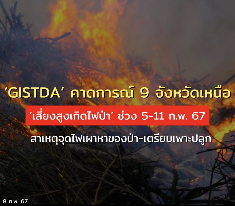 | • GISTDA คาดการณ์ 9 จังหวัดเหนือ เสี่ยงสูงเกิดไฟป่า |