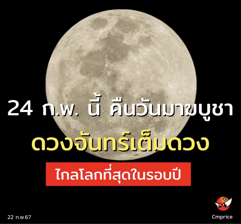 24 ก.พ. นี้ ดวงจันทร์เต็มดวงไกลโลกที่สุดในรอบปี คืนวันมาฆบูชา