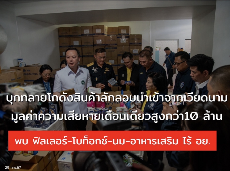 บุกทลายโกดังสินค้าลักลอบนำเข้าจากเวียดนาม พบ ฟิลเลอร์ โบท็อกซ์ นม อาหารเสริม ไร้ อย. มูลค่าความเสียหายเดือนเดียวสูงกว่า10 ล้านบาท