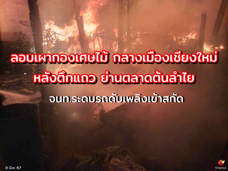 | • ลอบเผากองเศษไม้กลางเมืองเชียงใหม่ ด้านหลังตึกแถว ย่านตลาดต้นลำไย จนท.ระดมรถดับเพลิงเข้าสกัด |
