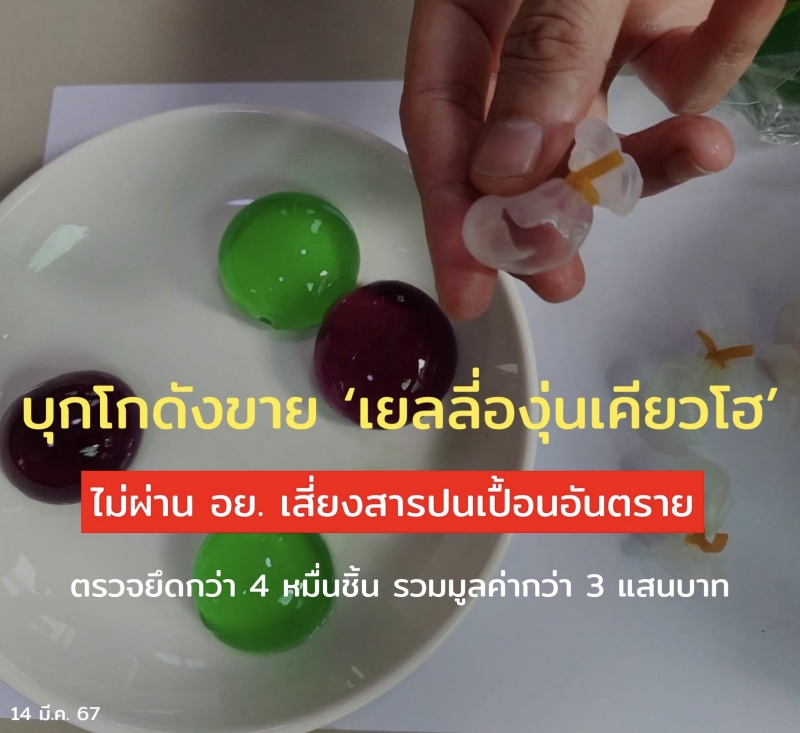 บุกโกดังขาย ‘เยลลี่องุ่นเคียวโฮ’ ไม่ผ่านอย. เสี่ยงสารปนเปื้อน สารอันตราย