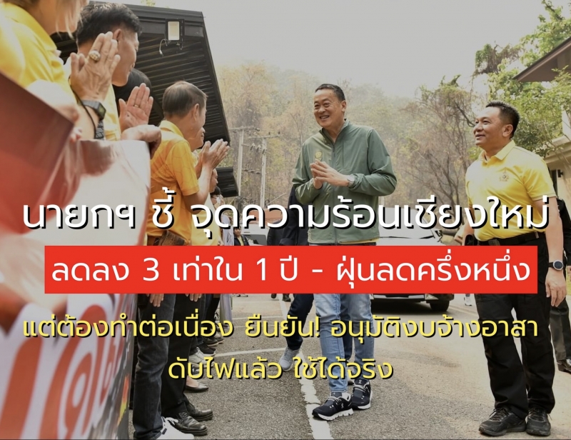 นายกฯ ชี้ จุดความร้อนเชียงใหม่ ลดลง 3 เท่าใน 1 ปี - ฝุ่นลดครึ่งหนึ่ง แต่ต้องทำต่อเนื่อง