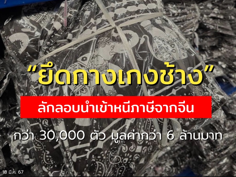 ยึดกางเกงช้าง ลักลอบนำเข้าหนีภาษีจากจีนกว่า 30,000 ตัว มูลค่ากว่า 6 ล้านบาท