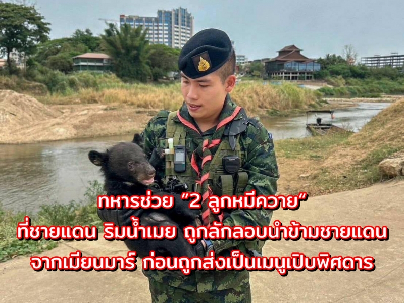 | • ทหารช่วย ​2 ลูกหมีควาย ที่ชายแดน ริมน้ำเมย ถูกลักลอบนำข้ามชายแดนจากเมียนมาร์ ก่อนถูกส่งเป็นเมนูเปิบพิศดาร |