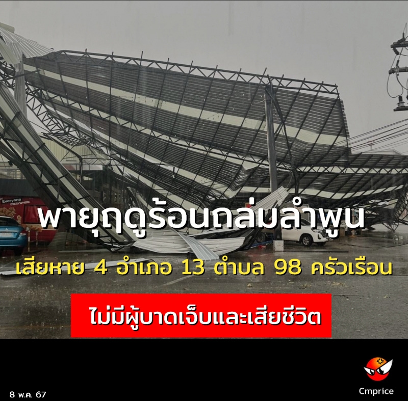 ภาพรวมเกิดความเสียหายในพื้นที่จังหวัดลำพูน จำนวน 4 อำเภอ 13 ตำบล 28 หมู่บ้าน 98 ครัวเรือน ไม่มีผู้ได้รับบาดเจ็บและเสียชีวิตแต่อย่างใด