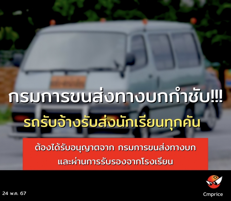 กรมการขนส่งทางบก กำชับ!!! รถรับจ้างรับส่งนักเรียนทุกคันต้องได้รับอนุญาตจาก กรมการขนส่งทางบกและผ่านการรับรองจากโรงเรียน เตือน!!! ผู้ขับรถรับส่งต้องได้รับใบอนุญาตขับรถยนต์ถูกต้องตามกฎหมาย และต้องมีผู้ควบคุมดูแลนักเรียนให้ถูกต้อง หากฝ่าฝืนกฎหมายจะดำเนินการลงโทษหนักทุกราย