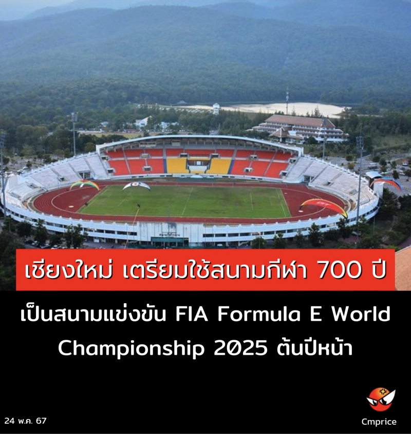 | • เชียงใหม่ เตรียมใช้สนามกีฬาสมโภช 700 ปี เป็นสนามแข่งขัน FIA Formula E World Championship 2025 ช่วงต้นปีหน้า |