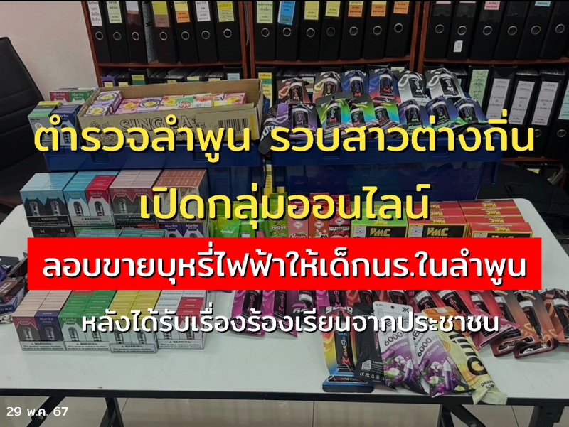 ตำรวจภูธรจังหวัดลำพูน จึงขอความร่วมมือจากพี่น้องประชาชน หากพบเห็น หรือมีเบาะแส การลักลอบจำหน่ายบุหรี่ไฟฟ้าทั้งทาง Online และแบบมีหน้าร้าน หรือการลักลอบจำหน่ายในสถานที่ต่างๆ
