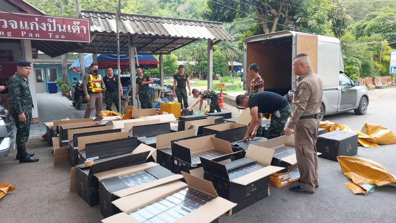 - บุหรี่ไฟฟ้ายี่ห้อ M BAR๙K จำนวน 34 ลัง ลังละ ๓๖ กล่อง แต่ละกล่องบรรจุบุหรี่ไฟฟ้า ๑๐ ชิ้น รวมบุหรี่ไฟฟ้าทั้งหมดประมาณ 12,240 ชิ้น มูลค่าประมาณ 3,672,000 บาท