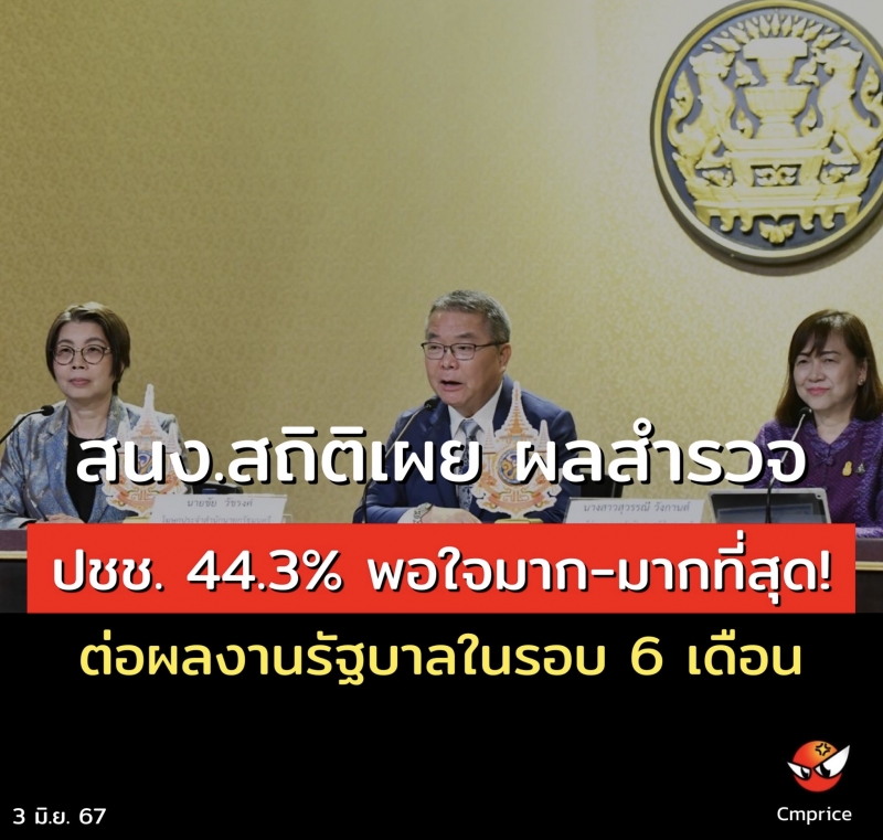 | • สนง.สถิติเผย ผลสำรวจ ปชช. 44.3% พอใจมาก - มากที่สุด! ต่อผลงานรัฐบาลในรอบ 6 เดือน |
