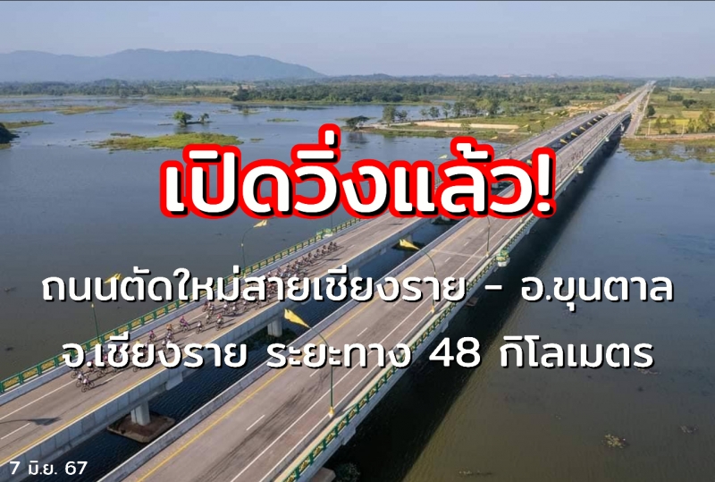 | • เปิดวิ่ง! ถนนตัดใหม่ ทล.1421 สายเชียงราย - อ.ขุนตาล จ.เชียงราย ระยะทาง 48 กิโลเมตร |