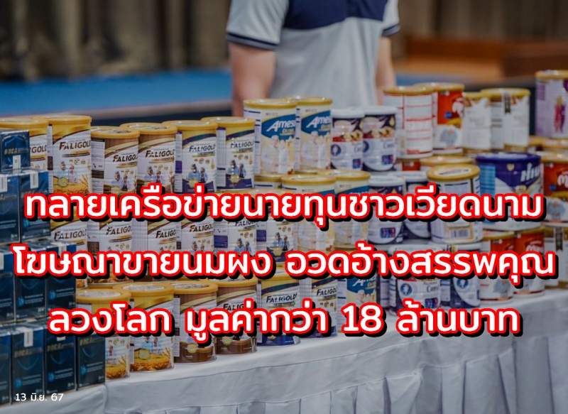 ทลายเครือข่ายนายทุนชาวเวียดนาม โฆษณาขายนมผง อวดอ้างสรรพคุณลวงโลก มูลค่ากว่า 18 ล้านบาท