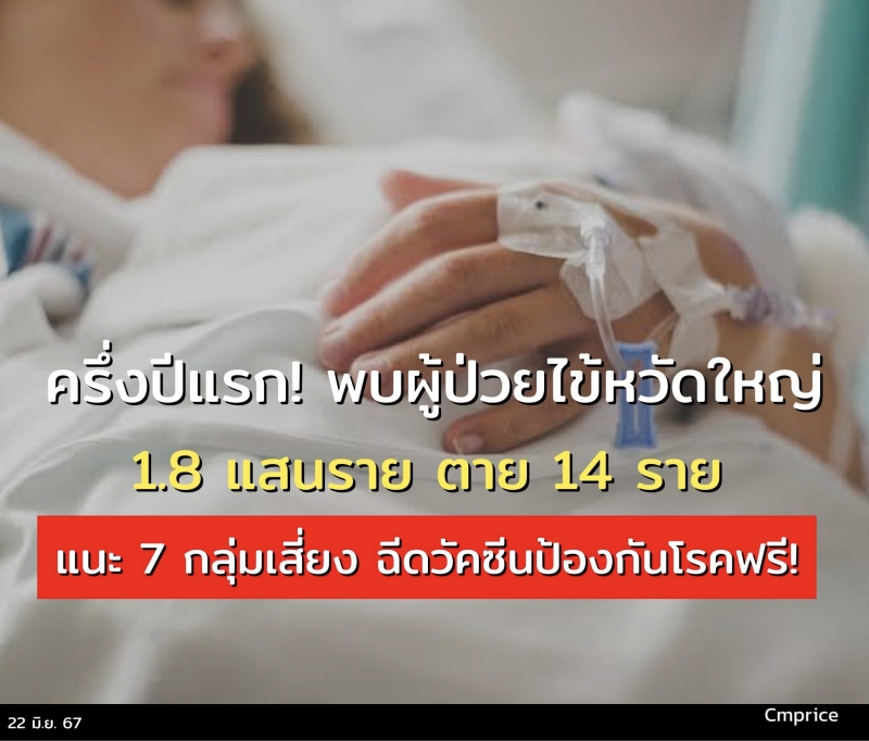 ครึ่งปีแรก! พบผู้ป่วยไข้หวัดใหญ่ 1.8แสนราย ตาย 14 ราย
