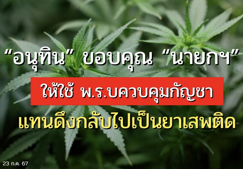 จากกระแสข่าว เรื่องนายเศรษฐา ทวีสิน นายกรัฐมนตรี ได้เรียกนายอนุทิน ชาญวีรกูล รองนายกรัฐมนตรีและรัฐมนตรีว่าการกระทรวงมหาดไทย พร้อมทั้งนายสมศักดิ์ เทพสุทิน รัฐมนตรีว่าการกระทรวงสาธารณสุข เข้าไปหารือ เรื่องบทสรุปนโยบายกัญชา โดยมีแนวทาง ให้ใช้พระราชบัญญัติควบคุมแทนการนำกลับไปเป็นยาเสพติด