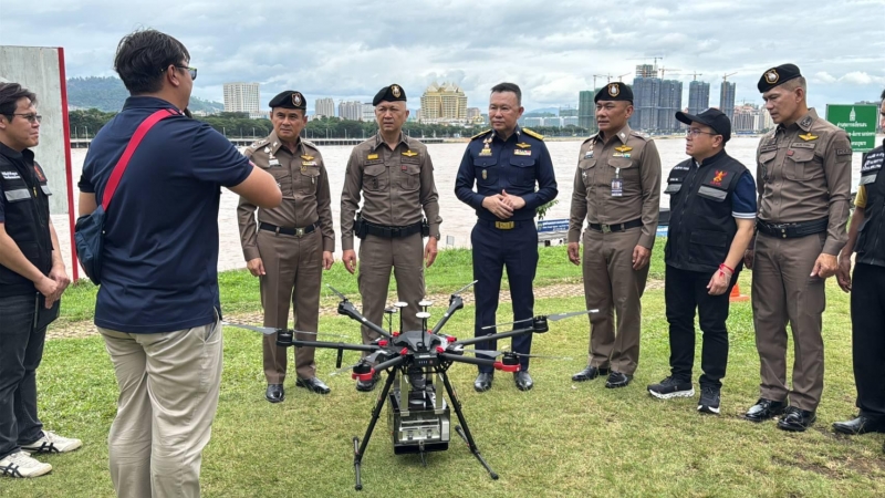 พล.ต.ท.ธัชชัยฯ กล่าวว่า สืบเนื่องจากเมื่อวันที่ 18 กรกฎาคม 2567 ที่ผ่านมา สำนักงานตำรวจแห่งชาติได้หารือกับสำนักงาน กสทช. และผู้ประกอบการโทรศัพท์มือถือรายใหญ่ทั้ง 3 ค่าย เพื่อแก้ไขปัญหาสัญญาณรุกล้ำข้ามไปยังฝั่งประเทศเพื่อนบ้าน และเพื่อให้เกิดความเชื่อมั่นว่ามีการตัดสัญญาณโทรศัพท์เคลื่อนที่หรือสัญญาณอินเทอร์เน็ต ที่กระจายลุกล้ำเข้าไปในพื้นที่ของประเทศเพื่อนบ้าน (คิงส์โรมัน สปป.ลาว) ฝั่งตรงข้าม อ.เชียงแสน จ.เชียงราย ในทุกมิติ จึงลงพื้นที่ร่วมกับหน่วยงานที่เกี่ยวข้อง เพื่อดำเนินการให้เป็นไปตามแผน รวมทั้งใช้เครื่องมือพิเศษตรวจสอบการกระจายสัญญาณโทรศัพท์เคลื่อนที่และสัญญาณอินเตอร์เน็ตตามแนวตะเข็บชายแดนในบริเวณใกล้เคียง และมอบหมายให้หน่วยงานในพื้นที่เฝ้าตรวจสอบและติดตามการลักลอบการติดตั้งเสาส่งสัญญาณเถื่อน เพื่อตัดรากถอนโคนแก๊งคอลเซ็นเตอร์ในพื้นที่เป้าหมายนี้