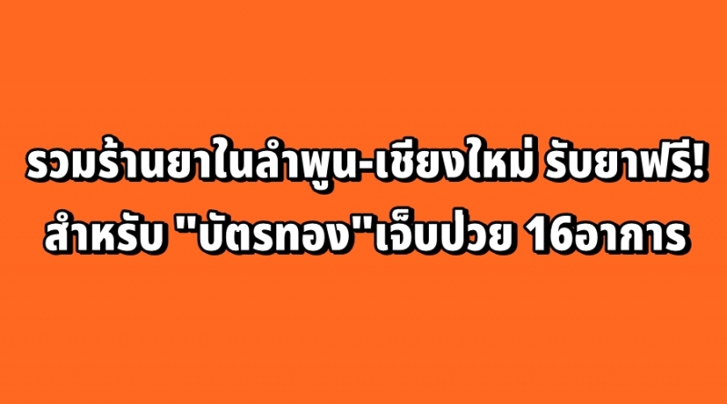 | • รับยาฟรี! รวมร้านยาในลำพูน-เชียงใหม่ สำหรับ "บัตรทอง"เจ็บป่วย 16อาการ |