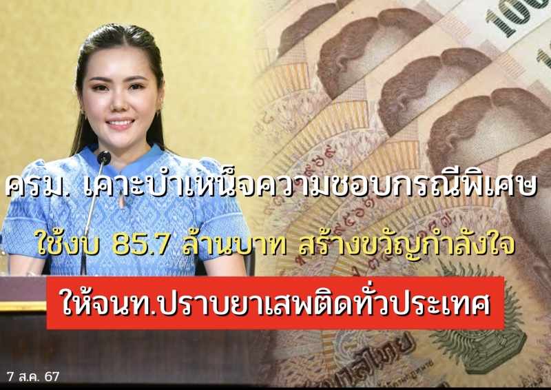 ครม. เคาะบำเหน็จความชอบกรณีพิเศษ 85.7 ล้านบาท สร้างขวัญกำลังใจให้จนท. ปราบยาเสพติดทั่วประเทศ จำนวนไม่เกิน 13,047 อัตรา