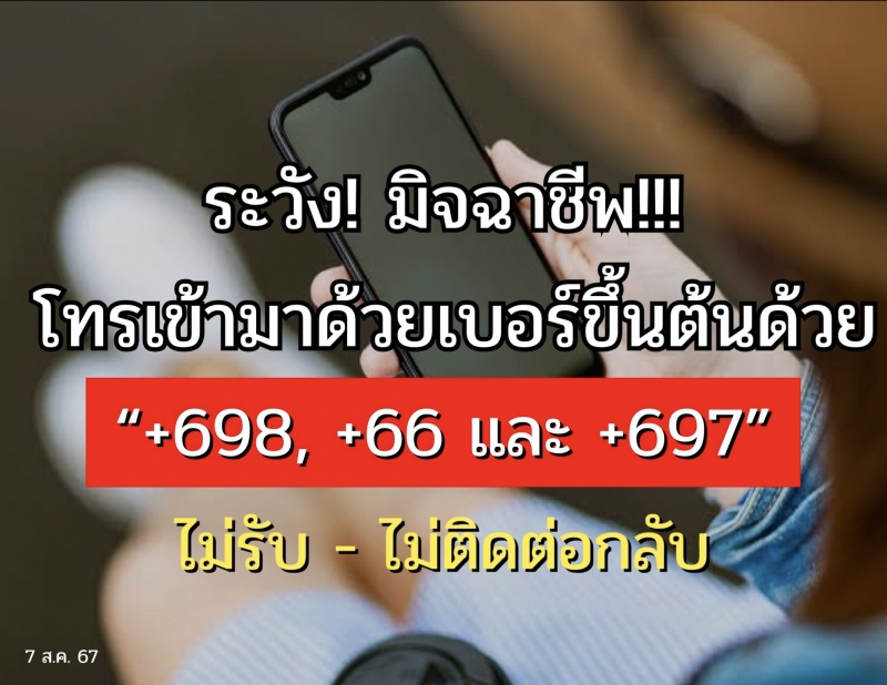 ระวัง! มิจฉาชีพ โทรเข้ามาด้วยเบอร์ขึ้นต้นด้วย +698, +66 และ +697 ไม่รับและไม่ติดต่อกลับ