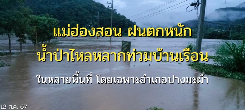 เมื่อคืนวันที่ 11 สิงหาคม ถึงเช้าวันที่ 12 สิงหาคม 2567 นายชูชีพ พงษ์ไชย ผู้ว่าราชการจังหวัดแม่ฮ่องสอน ได้รับรายงานจาก นายพรเทพ เจริญสืบสกุล ผู้อำนวยการสำนักบริหารพื้นที่อนุรักษ์ 16 สาขาแม่สะเรียง และ นายนิกร แก้วโมรา เขตรักษาพันธุ์สัตว์ป่าลุ่มน้ำ ได้รายงานว่า มีฝนตกต่อเนื่องโดยเฉพาะตำบลสบป่อง อำเภอปางมะผ้า จังหวัดแม่ฮ่องสอน โดยวัดปริมาณน้ำฝนได้สูงสุด บริเวณจุดสกัดด่านป่าไม้โกวิทย์ปัญญาตรง 2 (ดอยเขียว) วัดปริมาณน้ำฝน ได้ 148 มม. ทำให้เกิดน้ำป่าไหลหลากเข้าท่วมบ้านเรือนราษฎร บ้านไร่ และบ้านท่าไคร้ หมู่ที่ 3 ตำบลสบป่อง อำเภอปางมะผ้า และเส้นทางระหว่างทางหลวงแผ่นดิน 1095 -บ้านไร่ ได้ถูกน้ำท่วม ราษฎรไม่สามารถเดินทางสัญจร ได้