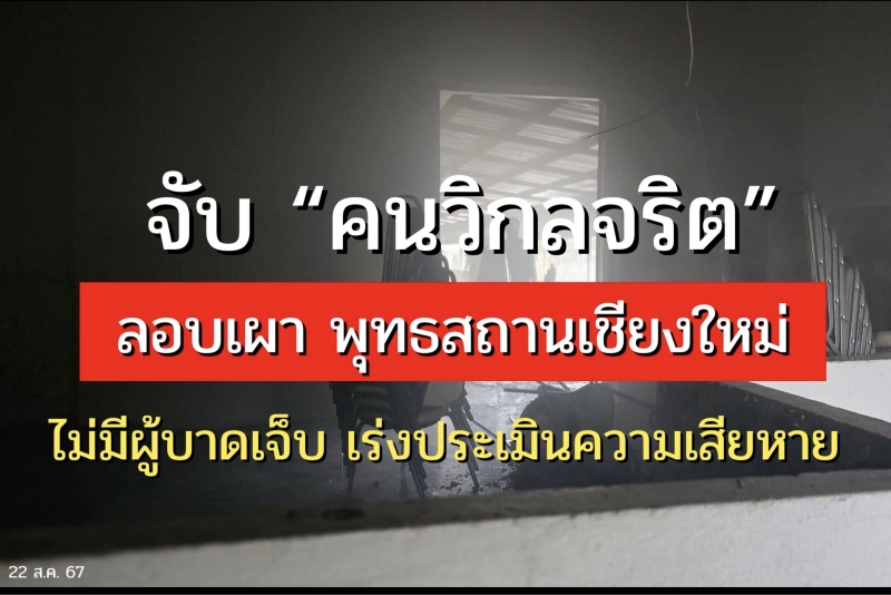 จับ “คนวิกลจริต” ลอบเผา พุทธสถานเชียงใหม่ ไม่มีผู้บาดเจ็บ เร่งประเมินความเสียหาพุทธสถาน