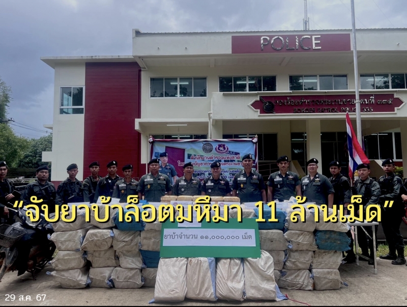 วันที่ 28 สิงหาคม 2567 ที่กองร้อยตำรวจตระเวนชายแดนที่ 335 อ.เชียงดาว จ.เชียงใหม่ พลตำรวจโท ยงเกียรติ มนปราณีต ผู้บัญชาการตำรวจตระเวนชายแดน (ผบช.ตชด.) พร้อมด้วย ผบก.ตชด.ภาค 3 กองกำลังผาเมือง ฉก.ไชยานุภาพ สภ.เชียงดาว สภ.นาหวาน ฝ่ายปกครองและหน่วยงานในพื้นที่ ร่วมแถลงข่าวการตรวจยึดยาบ้า 11 ล้านเม็ด จากขบวนการลักลอบลำเลียงยาเสพติด(ยาบ้า) จากประเทศเพื่อนบ้านเข้าสู่ตอนในของประเทศ