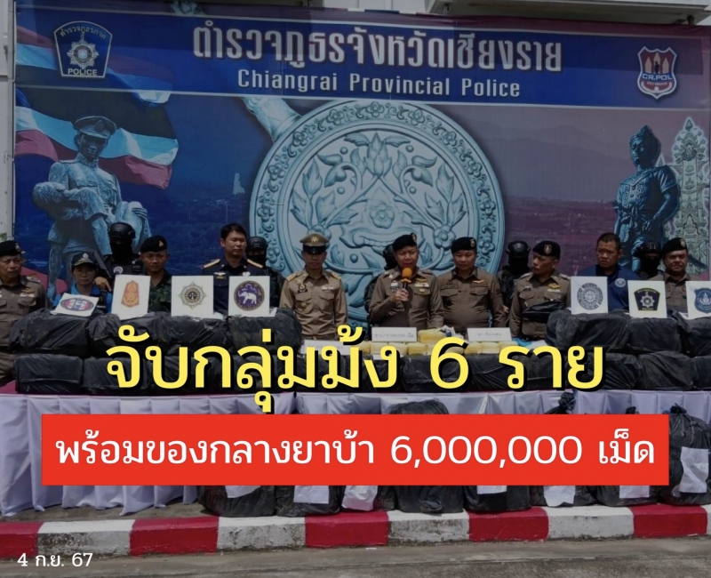 จับกลุ่มม้ง 6 ราย พร้อมของกลางยาบ้า 6,000,000 เม็ด ลักลอบลำเลียงจากแนวชายแดน เข้าสู่พื้นที่ตอนใน พื้นที่ สภ.เชียงแสน จ.เชียงราย
