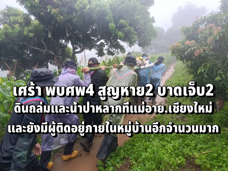 | • เศร้า ดินถล่มและน้ำป่าหลากที่แม่อาย.เชียงใหม่ พบศพ4 สูญหาย2 บาดเจ็บ2 และยังมีผู้ติดอยู่ภายในหมู่บ้านอีกจำนวนมาก |
