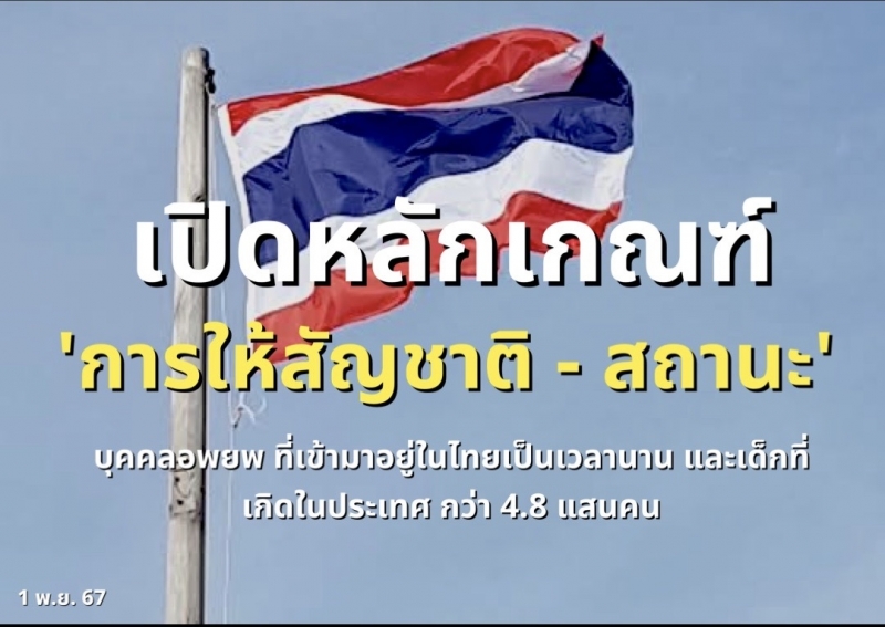 | • เปิดหลักเกณฑ์ 'การให้สัญชาติ-สถานะ' บุคคลอพยพ ที่เข้ามาอยู่ในไทยเป็นเวลานาน และเด็กที่เกิดในประเทศ กว่า 4.8 แสนคน |