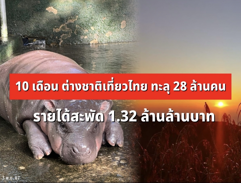 สุดปัง! 10 เดือน ต่างชาติเที่ยวไทย ทะลุ 28 ล้านคน รายได้สะพัด 1.32 ล้านล้านบาท