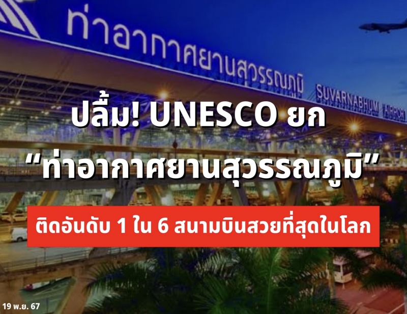 | • ปลื้ม! UNESCO ยก ท่าอากาศยานสุวรรณภูมิ ติดอันดับ 1 ใน 6 สนามบินสวยที่สุดในโลก |