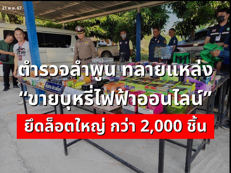 ตำรวจลำพูน ทลายแหล่งขายบุหรี่ไฟฟ้าออนไลน์ยึดล็อตใหญ่ กว่า 2,000 ชิ้น ล่อซื้อ ผู้ต้องหาทำเนียนปลอมเป็นไรเดอร์ส่งสินค้า