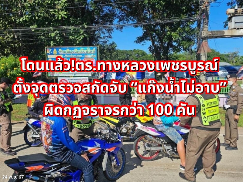 | • โดนแล้ว! ตร.ทางหลวงเพชรบูรณ์ ตั้งจุดตรวจสกัดจับ แก๊งน้ำไม่อาบ ผิดกฏจราจรกว่า 100 คัน |