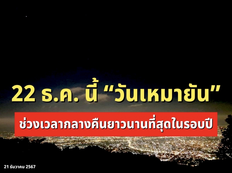 | • 22 ธ.ค. นี้ วันเหมายัน ช่วงเวลากลางคืนยาวนานที่สุดในรอบปี |