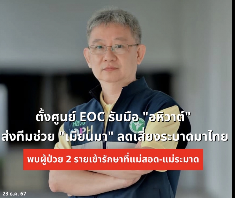 | • ปลัด สธ. สั่งตั้งศูนย์ EOC รับมือ "อหิวาต์" พร้อมให้การสนับสนุนทีมช่วย "เมียนมา" ลดความเสี่ยงการระบาดมายังไทย |