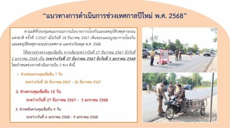 ลำพูนควบคุมเข้ม 10วัน 27 ธ.ค. 67 - 5 ม.ค.68 ตั้ง13จุดตรวจ 56จุดบริการประชาชน ครอบคลุมทุกอำเภอ