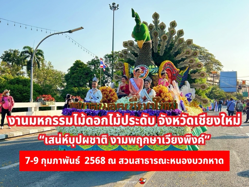 | • เชียงใหม่ พร้อมแล้ว จัดงานมหกรรมไม้ดอกไม้ประดับ จังหวัดเชียงใหม่ เสน่ห์บุปผชาติ งามพฤกษาเวียงพิงค์ 7-9 กุมภาพันธ์ 2568 ณ สวนสาธารณะหนองบวกหาด |