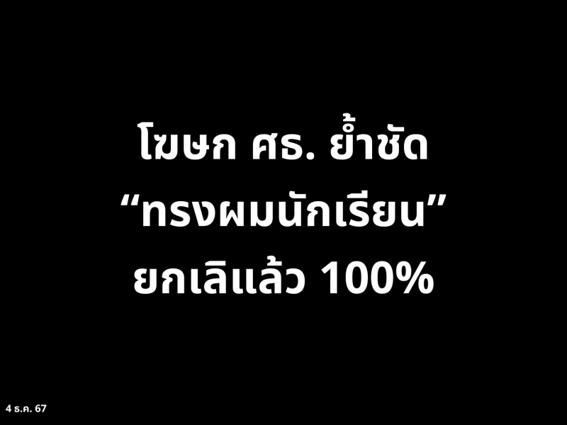 | • โฆษก ศธ. ย้ำชัด ทรงผมนักเรียน ยกเลิกแล้ว 100% วอนเปิดกว้างรับความเห็นต่าง ไม่มองข้ามสิทธิเด็ก |