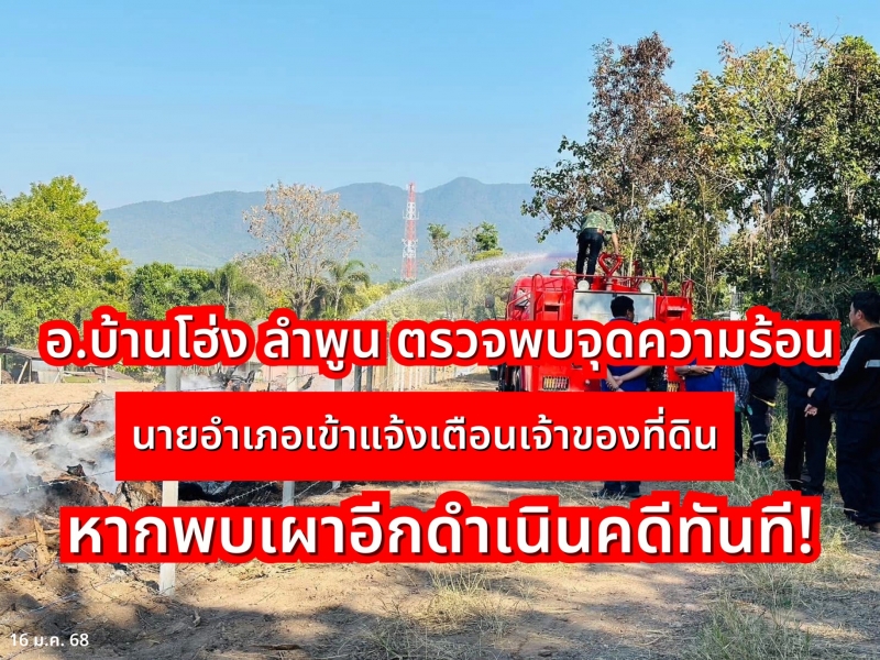 | • #บ้านโฮ่ง ตรวจพบจุดความร้อน นายอำเภอเข้าแจ้งเตือนเจ้าของที่ดิน หากพบเผาอีกดำเนินคดีทันที! |