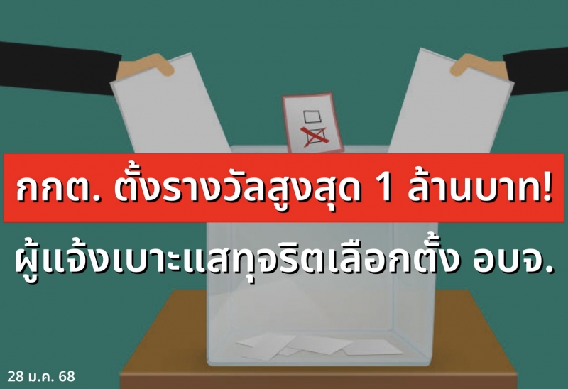 | • กกต. ตั้งรางวัลสูงสุด 1 ล้านบาท! ผู้แจ้งเบาะแสทุจริตเลือกตั้ง อบจ. |