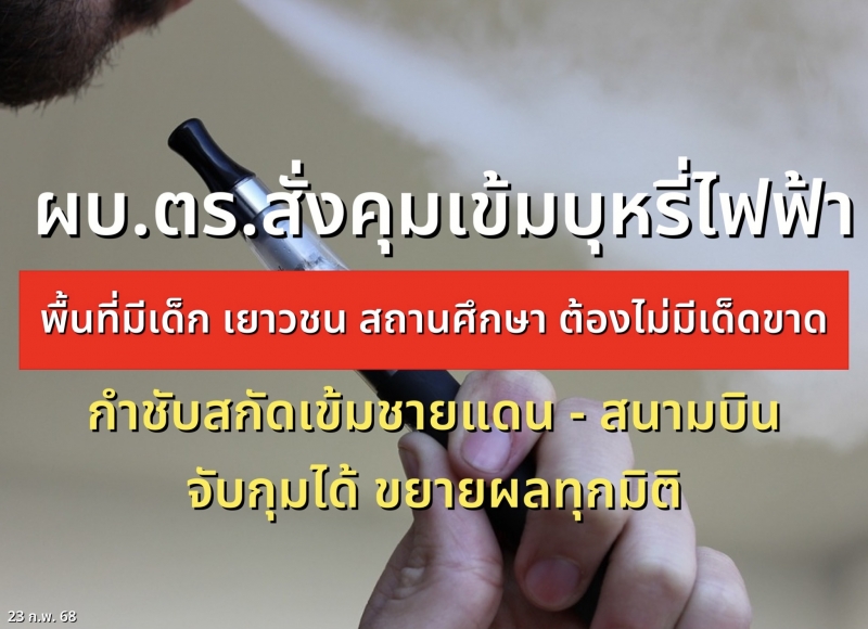| • ผบ.ตร.สั่งคุมเข้มบุหรี่ไฟฟ้า ย้ำพื้นที่มีเด็ก เยาวชน สถานศึกษา ต้องไม่มีเด็ดขาด |