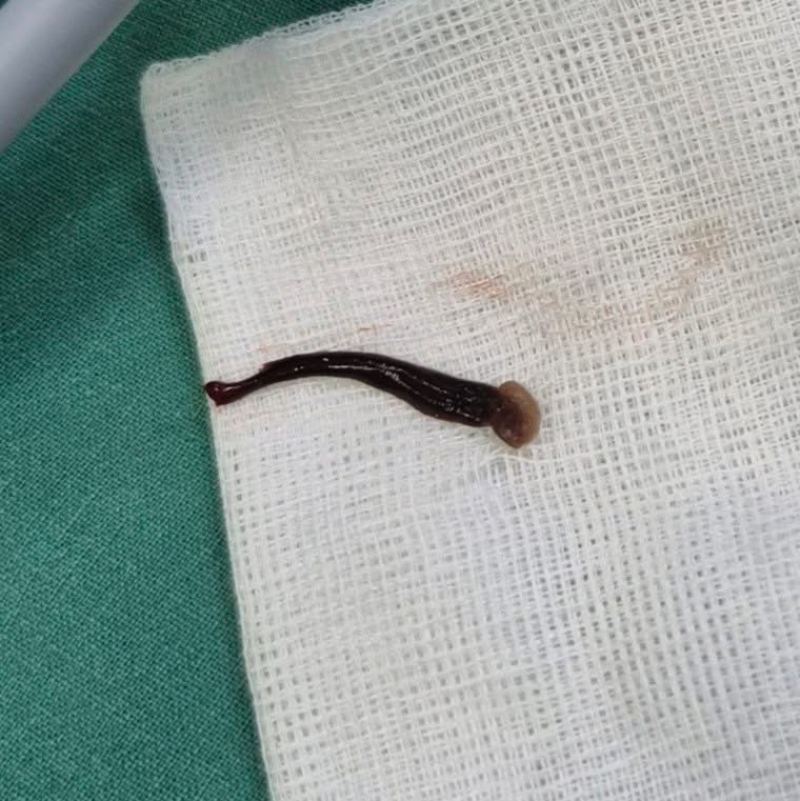 หลังจากตรวจดูในโพรงจมูกอย่างละเอียด สิ่งที่พบคือ... "ปลิง" เกาะอยู่ในโพรงจมูก จึงได้ใช้เครื่องดูดปลิง ออกมาได้เรียบร้อย ตอนนี้น้องหายดี ไม่มีเลือดออกเพิ่มเติม คุณหมอจึงให้ยาฆ่าเชื้อและอนุญาตให้กลับบ้านได้แล้ว”